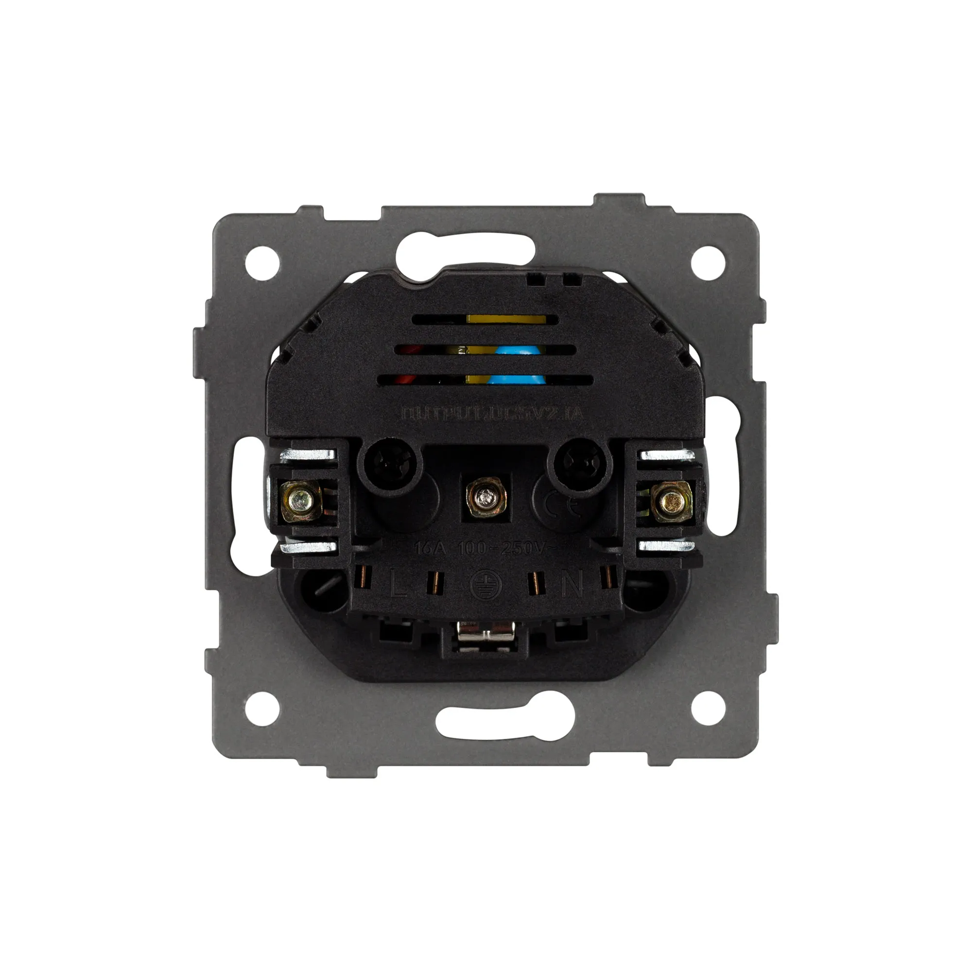Механизм розетки с заземлением на 1 пост и 2USB Type A порта. Цвет - черный. Без фронтальной рамки. Уровень пылевлагозащиты IP20. Устанавливается в стандартный подрозетник.