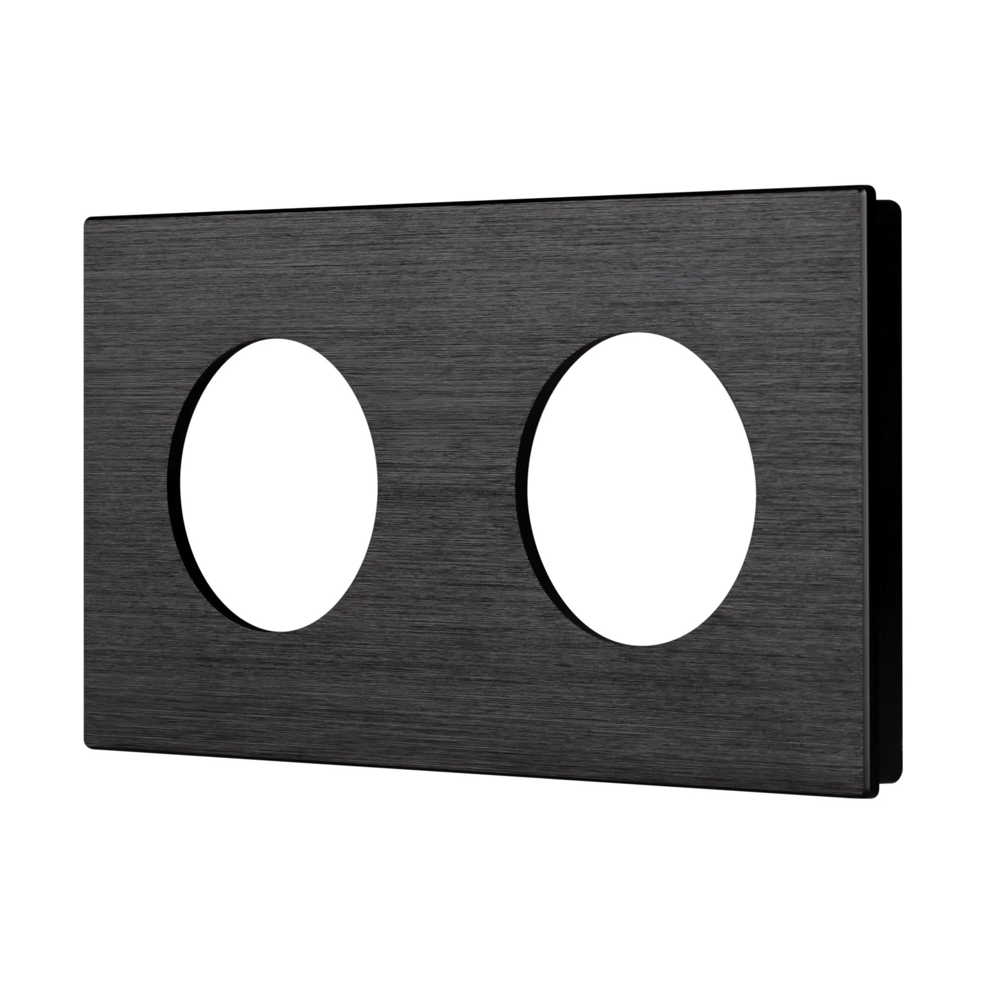 Рамка алюминиевая на 2 поста, под встраиваемый механизм. Вырез под функциональную часть - круг. Цвет - черный. Ориентации монтажа - горизонтальная и вертикальная.