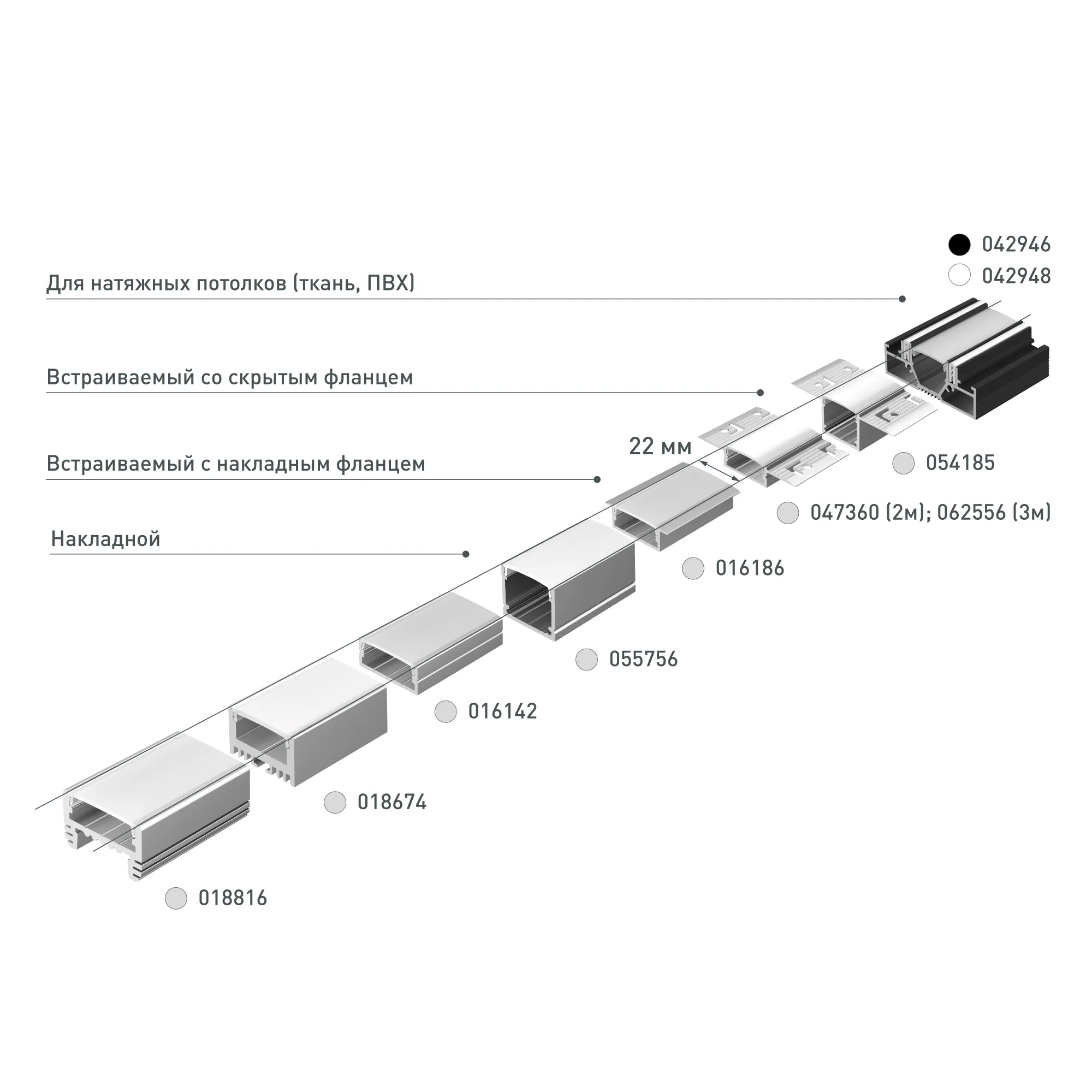 Алюминиевый профиль для светодиодных лент и линеек. Скрытая установка (под строительную отделку). Габаритные размеры (L×W×H): 2000x63,5x20 мм. Ширина площадки для ленты 14,6 мм. Экраны, заглушки и другие аксессуары приобретаются отдельно. Цена за 1 метр.