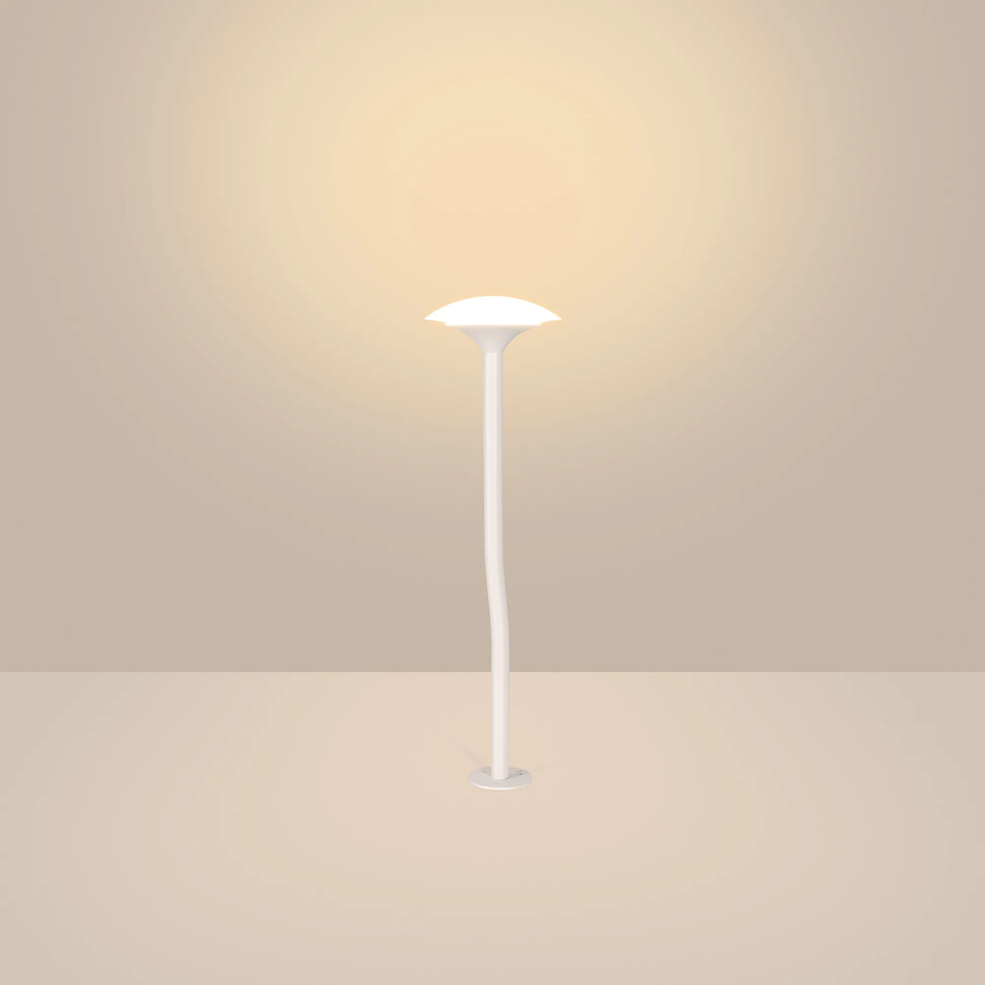 Уличный декоративный светодиодный светильник. Мощность 1 Вт, св. поток 111 лм, 122 лм/Вт, теплый 3000 K, CRI>80, угол излучения 100°, напряжение питания 24 В. Белый корпус из алюминия, прозрачный матовый рассеиватель из PMMA. Степень защиты IP65. Размер: диаметр 98 мм, высота 355 мм, высота углубления 155 мм. Монтаж в грунт с помощью основания пика (входит в комплект поставки). Драйвер приобретается отдельно.