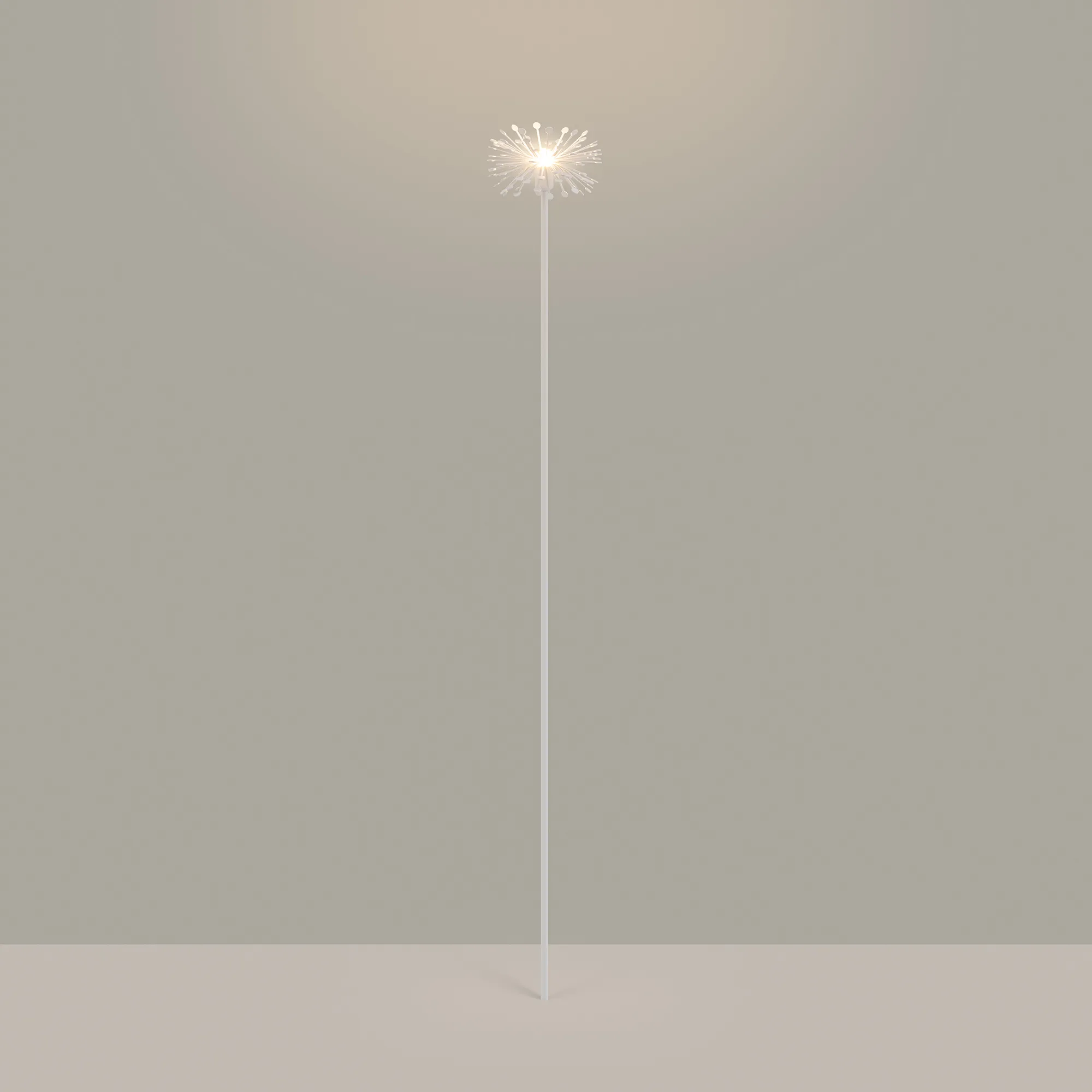 Уличный декоративный светодиодный светильник. Мощность 0.5 Вт, св. поток 13 лм, 92 лм/Вт, теплый 3000 K, CRI>80, угол излучения 24°, напряжение питания 24 В. Белый корпус из алюминия, прозрачный матовый рассеиватель из PMMA. Степень защиты IP65. Размер: диаметр 105 мм, высота 705 мм, высота углубления 155 мм. Монтаж в грунт с помощью основания пика (входит в комплект поставки). Драйвер приобретается отдельно.