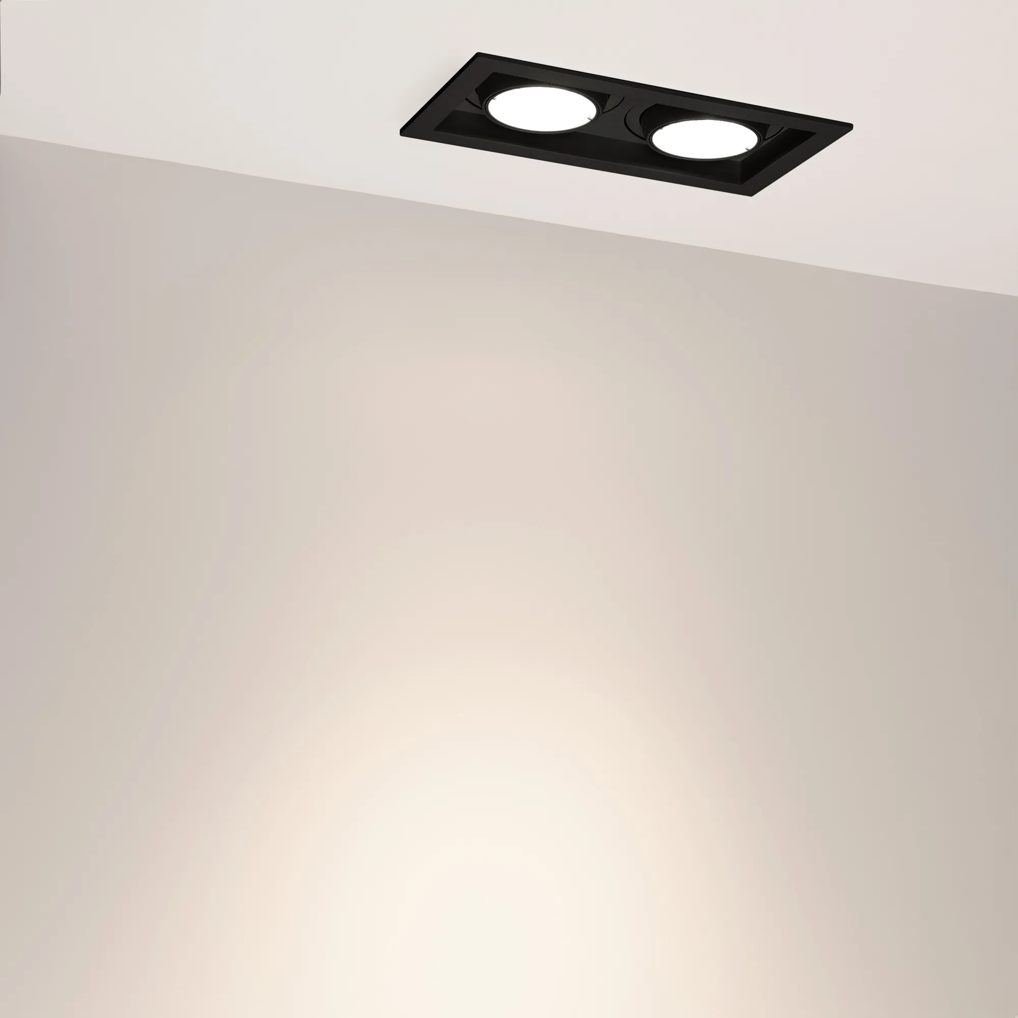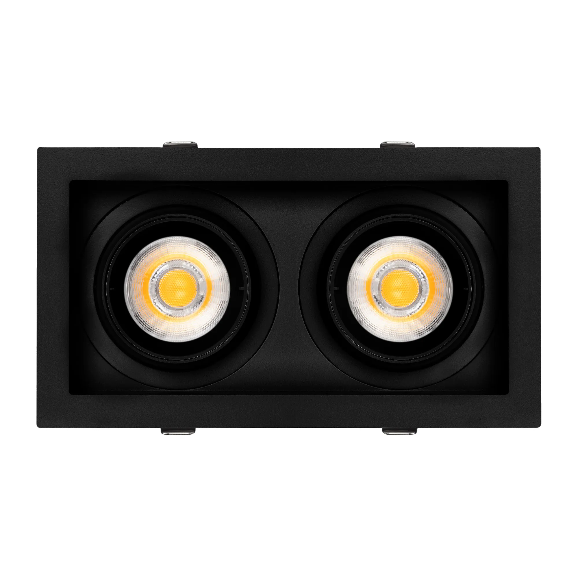 Поставка под заказ от 30 шт. Встраиваемый карданный светильник. Мощность 2х20 Вт, св. поток 4264 лм, 106 лм/Вт, дневной 4000 K, CRI>92, угол 40°, напряжение питания 230 В. Чёрный корпус из алюминия, белая вставка, степень защиты IP20. Размер: длина 210 мм, ширина 117 мм, высота 105 мм. Монтаж встраиваемый, установочное отверстие: длина 190 мм, ширина 95 мм. Драйвер 24-42 В, 500 мА, пульсация <2%.
