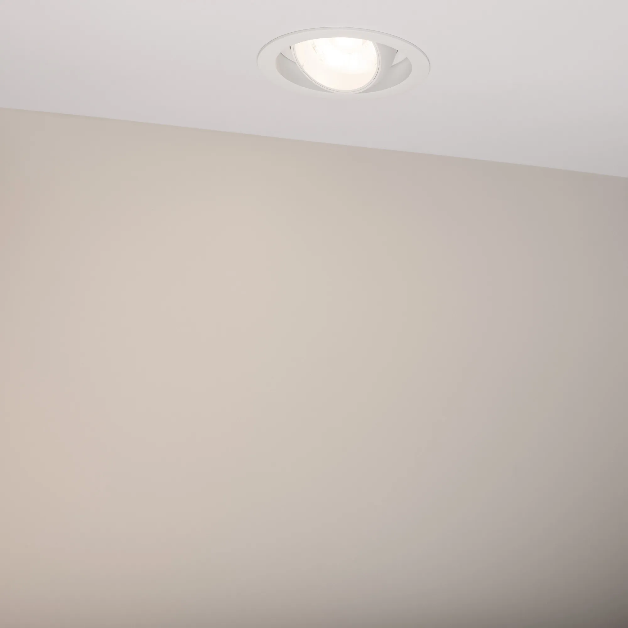 Встраиваемый карданный светильник. Мощность 30 Вт, св. поток 2650 лм, 88 лм/Вт, дневной 4000 K, CRI>92, угол 50°, напряжение питания 230 В. Белый корпус из алюминия, белая вставка, степень защиты IP20. Размер: диаметр 135 мм, высота 125 мм. Монтаж встраиваемый, установочное отверстие: диаметр 120 мм. Драйвер 24-42 В, 750 мА, пульсация <2%.