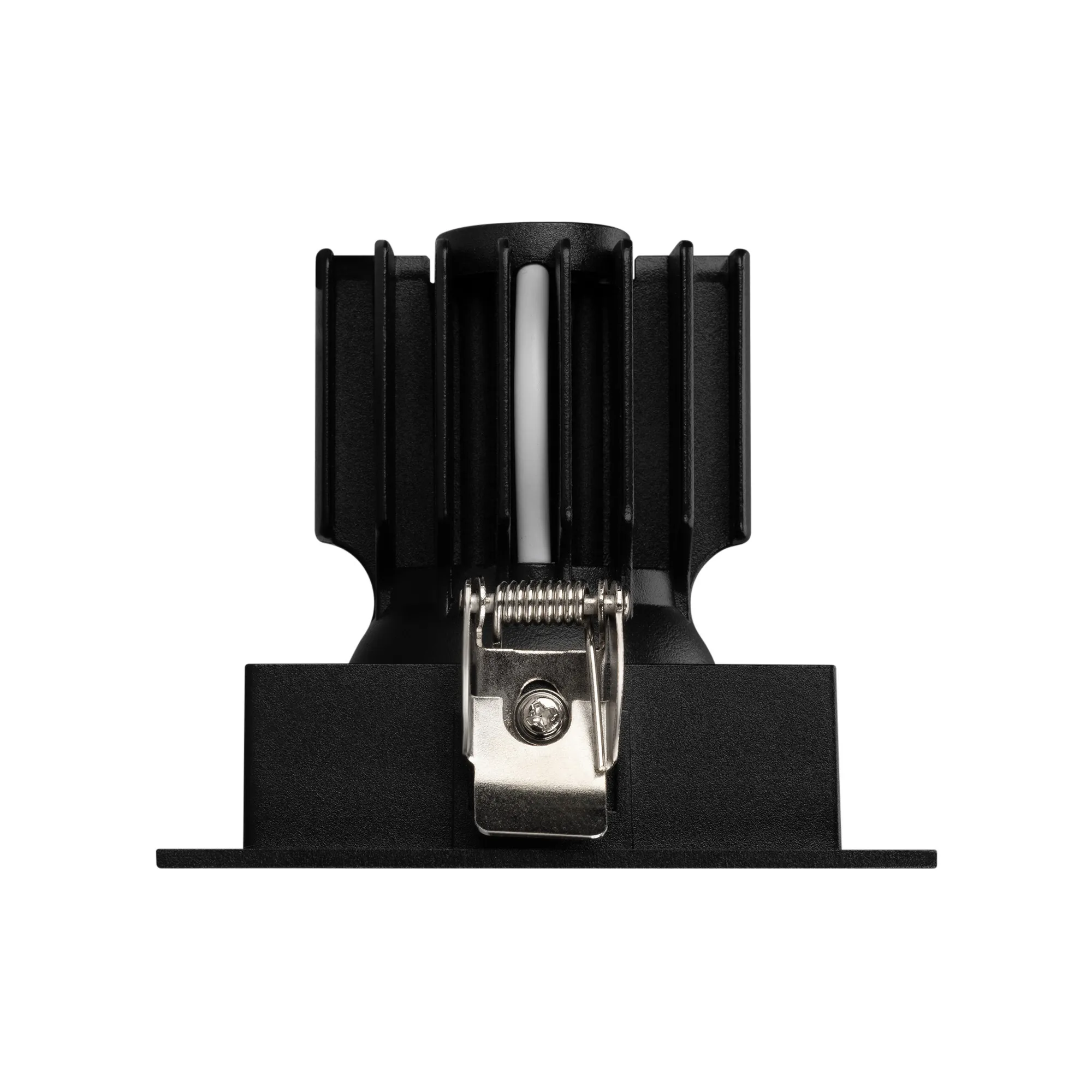Встраиваемый карданный светильник. Мощность 12 Вт, св. поток 1394 лм, 116 лм/Вт, тёплый 3000 K, CRI>92, угол 40°, напряжение питания 230 В. Чёрный корпус из алюминия, чёрная вставка, степень защиты IP20. Размер: длина 90 мм, ширина 90 мм, высота 80 мм. Монтаж встраиваемый, установочное отверстие: длина 75 мм, ширина 75 мм. Драйвер 27-40 В, 300 мА, пульсация <2%.