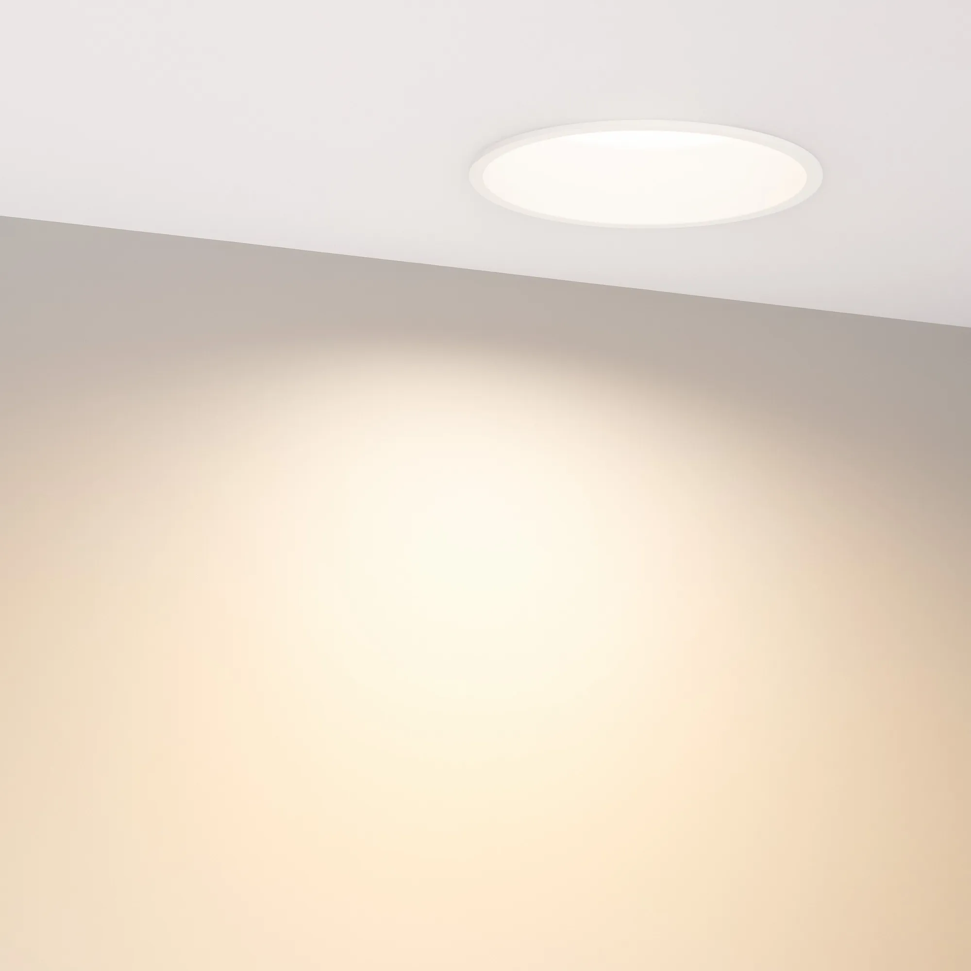 Встраиваемый светильник даунлайт. Мощность 16 Вт, св. поток 1220 лм, 76 лм/Вт, тёплый 3000 K, CRI>90, угол 90°, напряжение питания 230 В. Белый круглый корпус из алюминия, степень защиты IP20. Размер: диаметр 125 мм, высота 60 мм. Монтаж встраиваемый, установочное отверстие: диаметр 115 мм. Драйвер 27-42 В, 400 мА, пульсация <2%.
