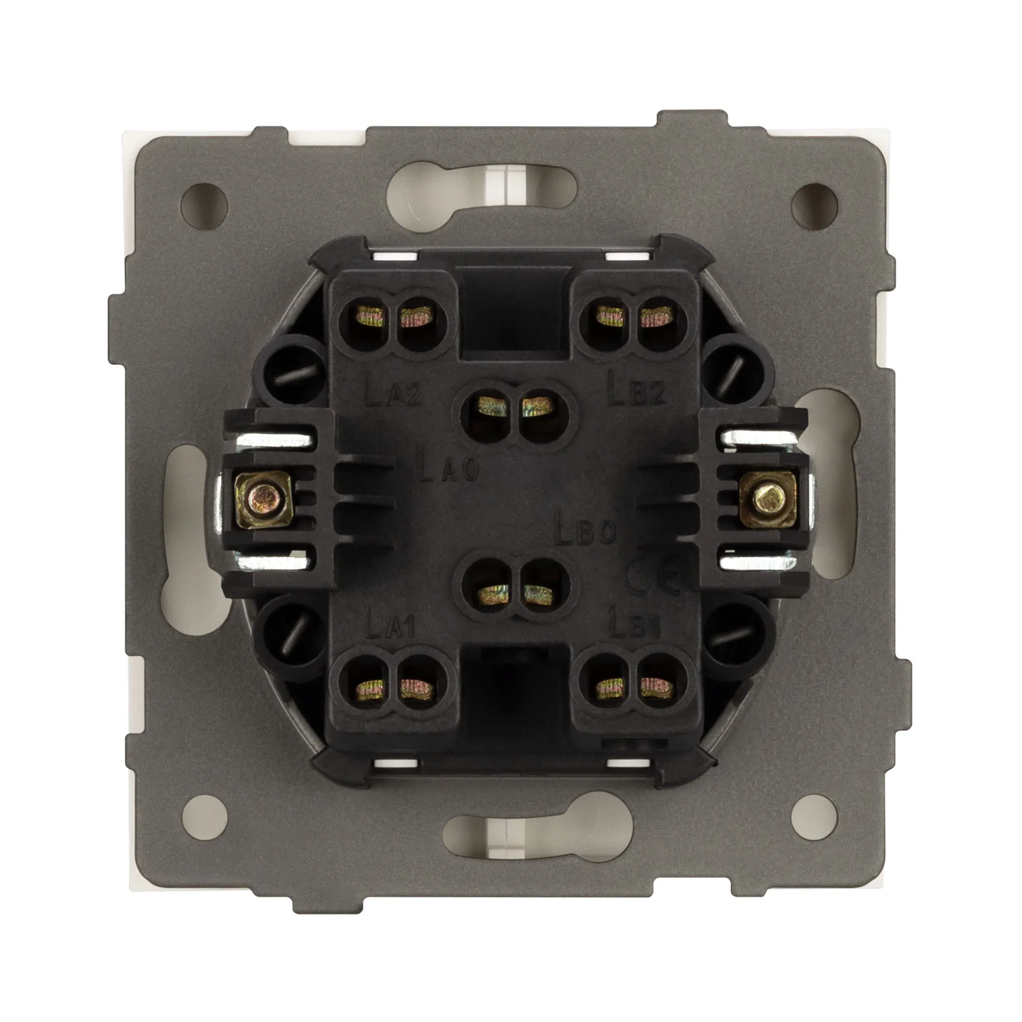 Механизм выключателя света клавишный на 1 пост 2 клавиши (проходной). Цвет - белый. Без фронтальной рамки. Уровень пылевлагозащиты IP20. Выключатель устанавливается в стандартный подрозетник круглого сечения диаметром 60мм.