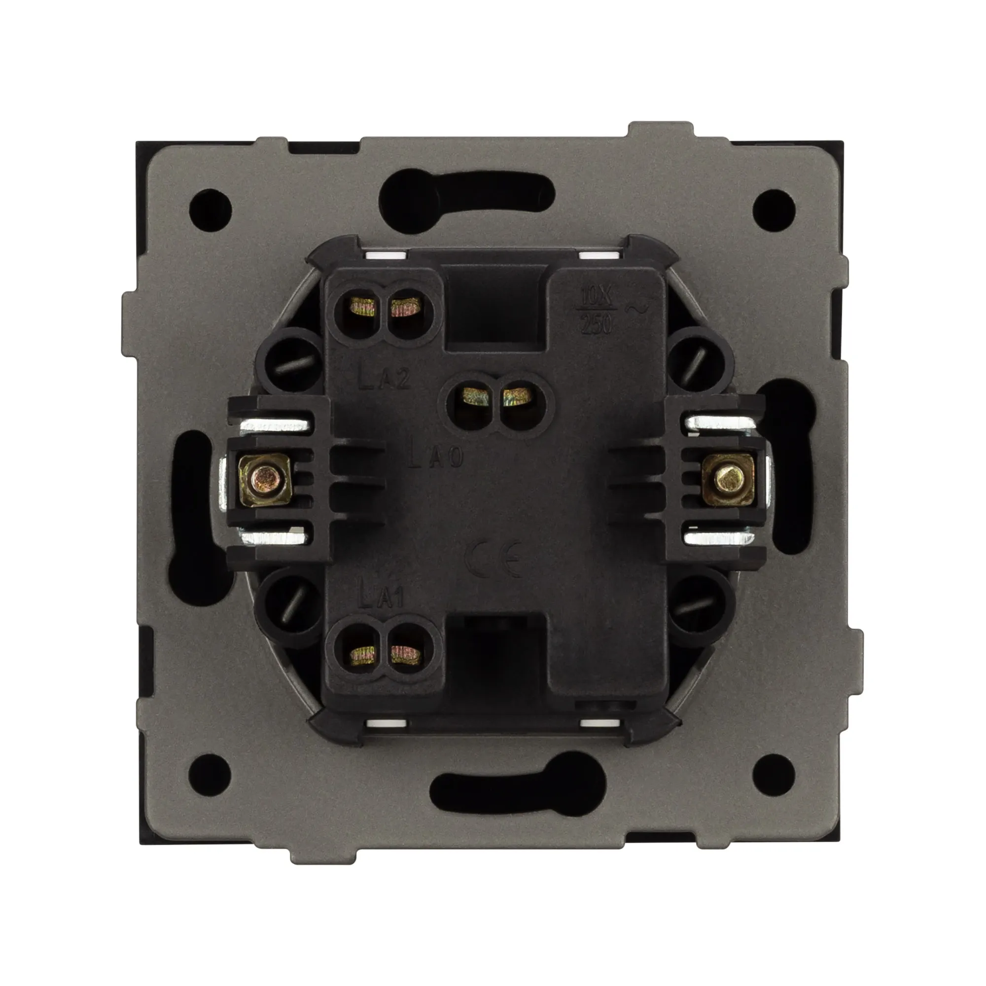 Механизм звонкового выключателя на 1 пост 1 клавиша. Цвет - серый, с Soft-Touch покрытием. Без фронтальной рамки. Уровень пылевлагозащиты IP20. Выключатель устанавливается в стандартный подрозетник круглого сечения диаметром 60мм.