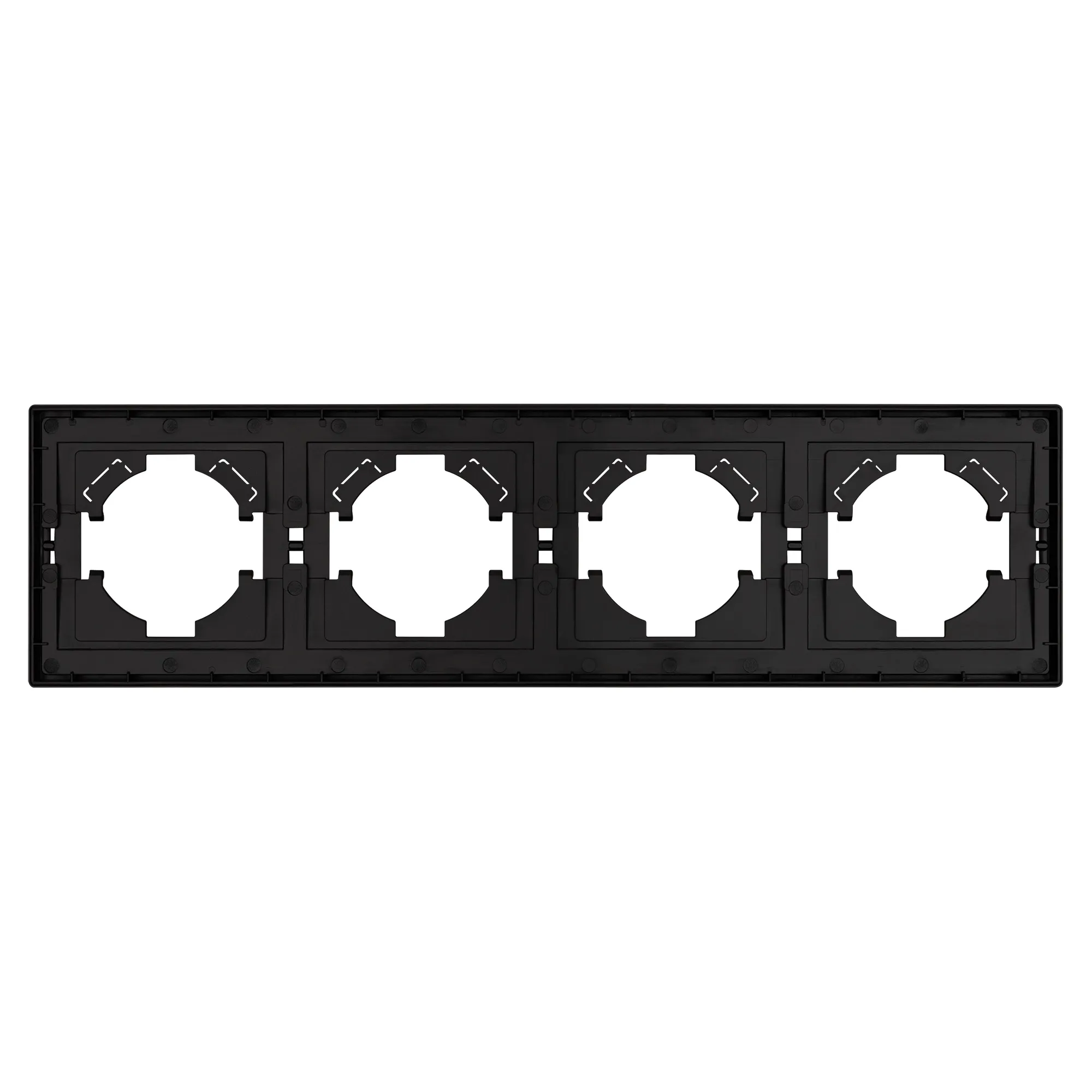 Рамка пластиковая на 4 поста, под встраиваемый механизм. Цвет - матовый графитовый, с Soft-Touch покрытием. Уровень герметичности IP20. Ориентация монтажа горизонтальная.